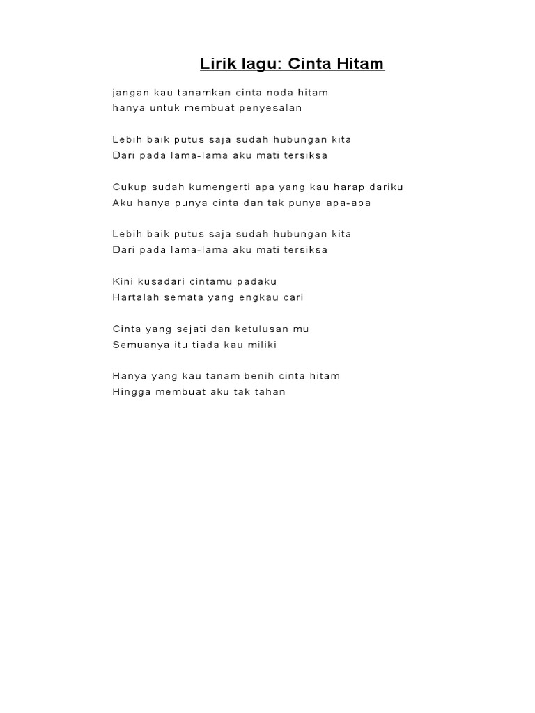 Lagu Cinta Hitam Lirik