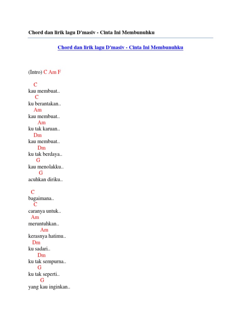 Lirik Dan Chord Lagu Cinta Ini Membunuhku D Masiv