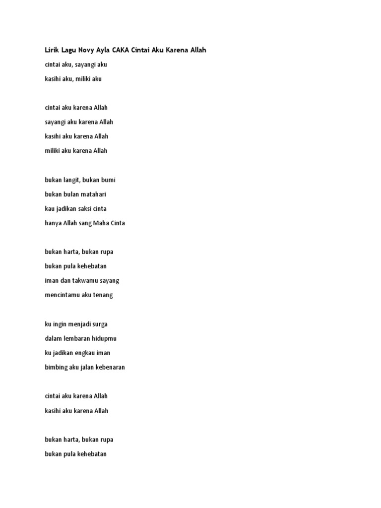 Lirik Lagu Cintai Aku Karena Allah By Novi Ayla Gejag