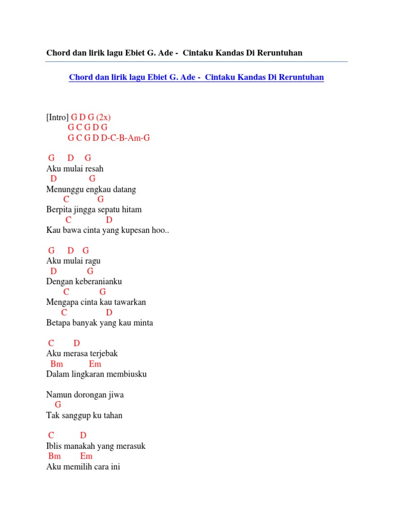 Chord Dan Lirik Lagu Ebiet G Ade Cintaku Kandas Di Reruntuhan By