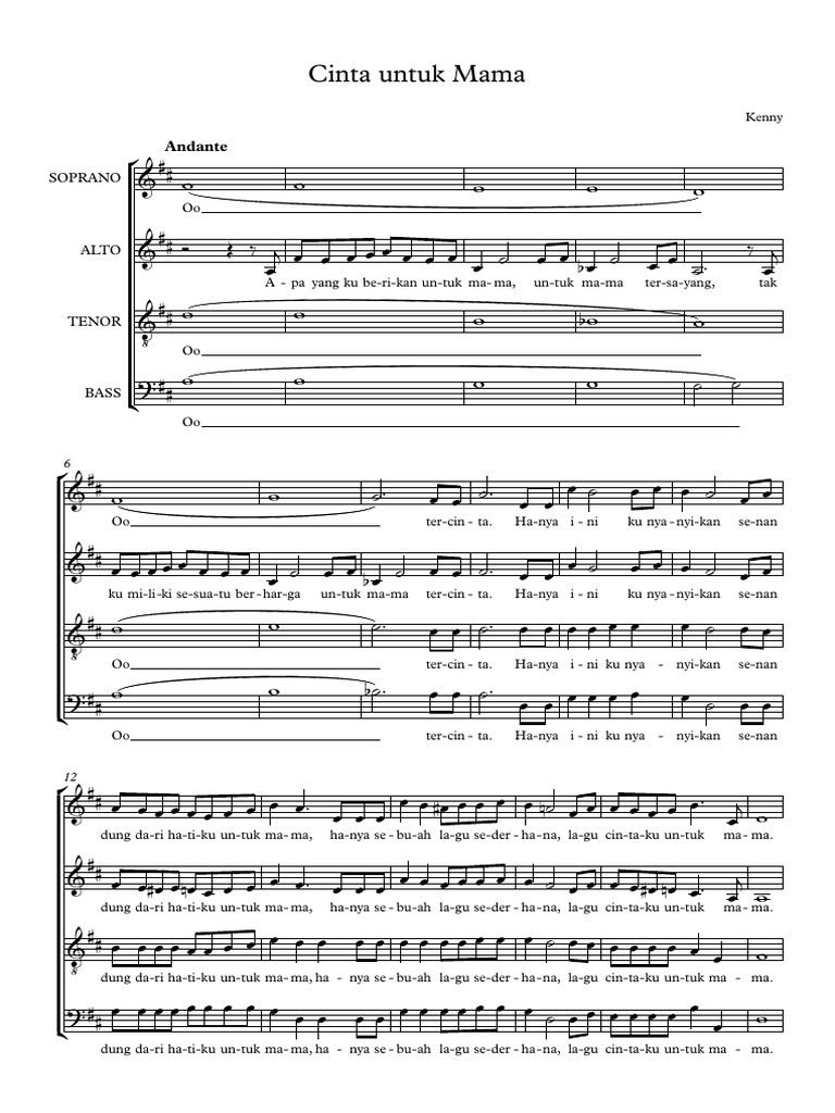 Not Balok Lagu Cintaku Untuk Mama Lagu Cinta Balok