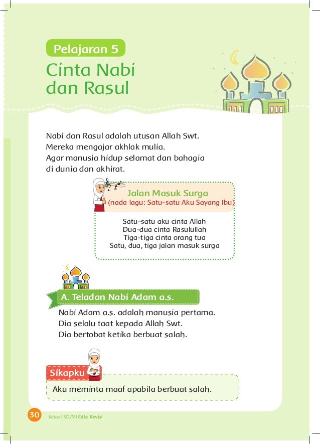 Tema 6 Cinta Nabi Dan Rasul Nada Lagu Satu Satu Aku Sayang Ibu