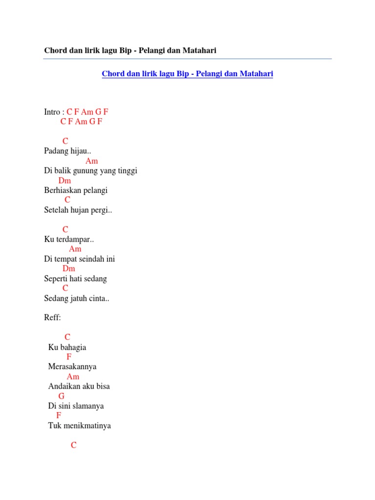 Chord Dan Lirik Lagu Bip Pelangi Dan Matahari