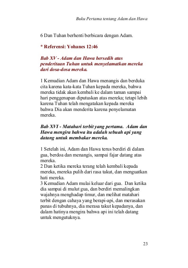 Buku Pertama Tentang Adam Dan Hawa