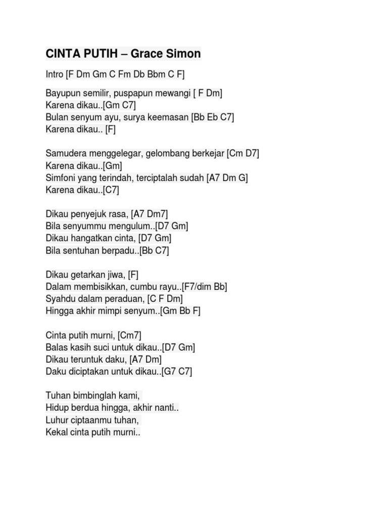 Grace Simon Cinta Putih Lyrics Musixmatch