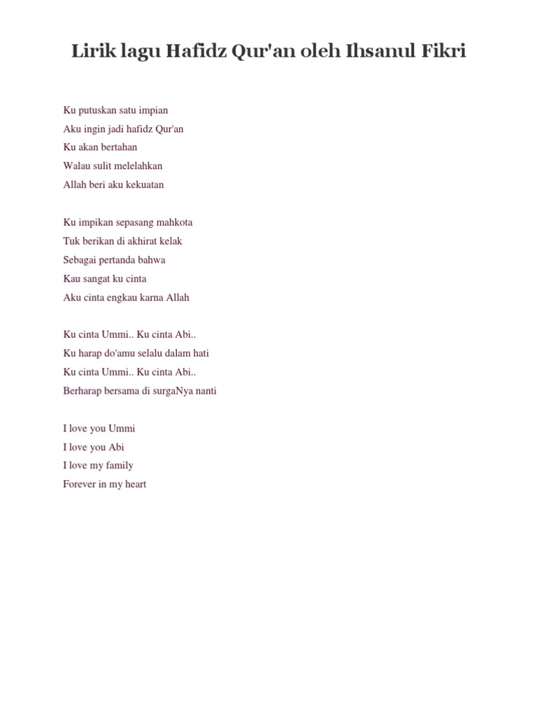 Doc Lirik Aku Ingin Jadi Hafidz Quran Denny Darmawan Academia Edu