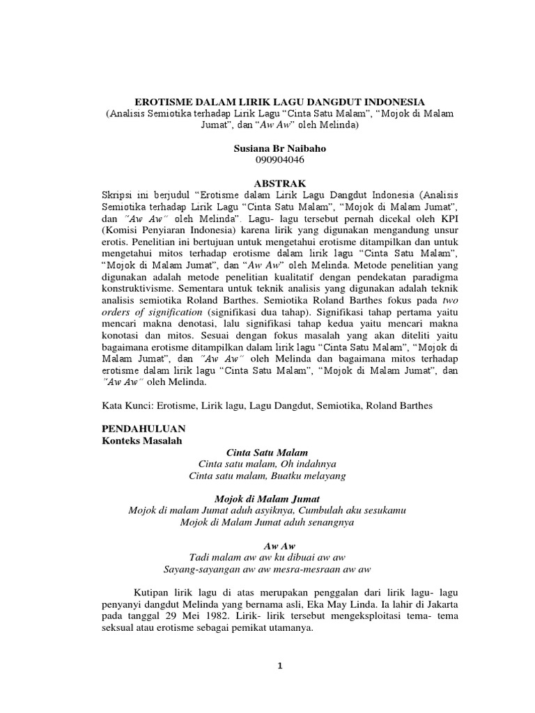 Erotisme Dalam Lirik Lagu Dangdut Indonesia Cinta Satu Malam