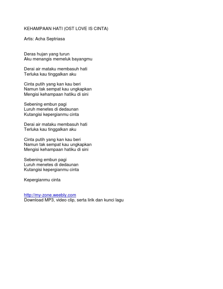 Acha Septriasa Kehampaan Hati Ost Love Is Cinta