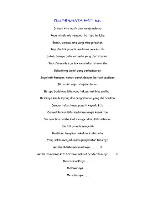 Ibu Permata Hati Ku Puisi