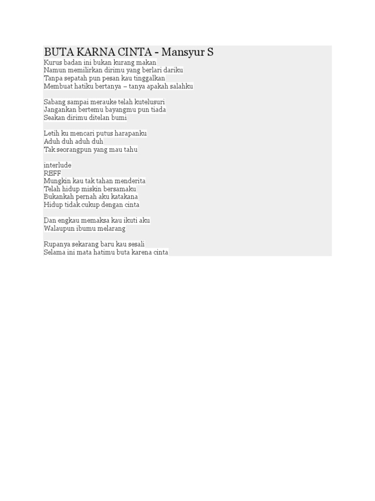 Lirik Lagu Populer Lirik Lagu Buta Karna Cinta Mansyur S