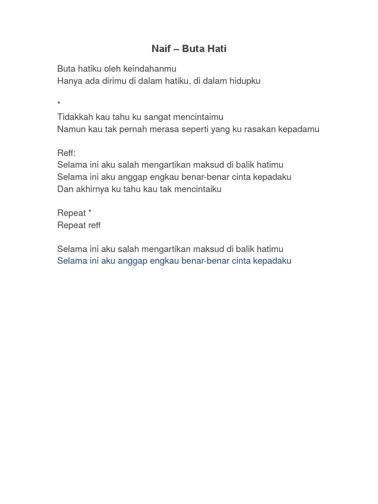 Chord Dan Lirik Lagu Buta Hati Naif Lagu Tentang Patah Hati