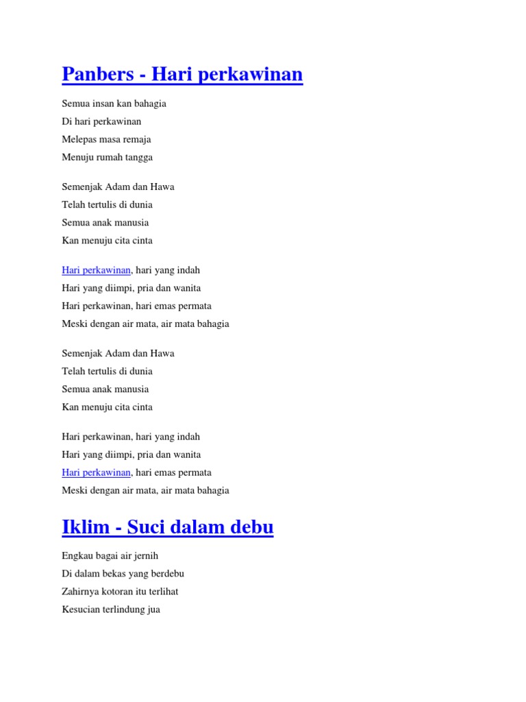 Lirik Lagu Panbers Akhir Cinta Liriklagu Id