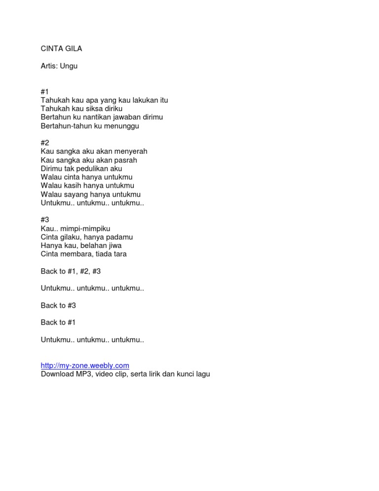 Kunci Chord Gitar Dan Lirik Lagu Cinta Gila Ungu Kau Mimpi