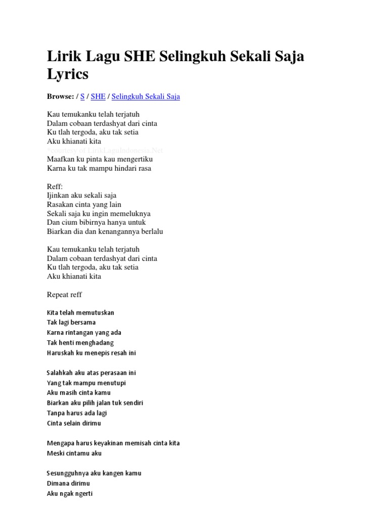 Lirik Lagu She Selingkuh Sekali Saja Lyrics