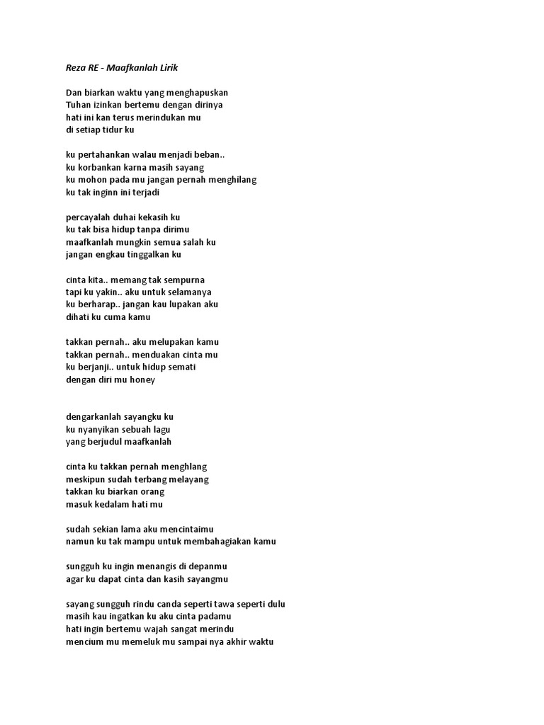 Lagu Reza Re Maafkanlah Lirik Offline For Android Apk Download