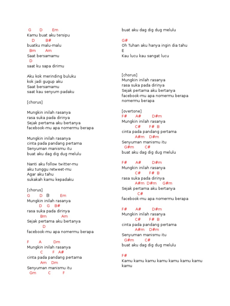 Kunci Chord Gitar Dan Lirik Lagu Pandangan Pertama Ku Rasa