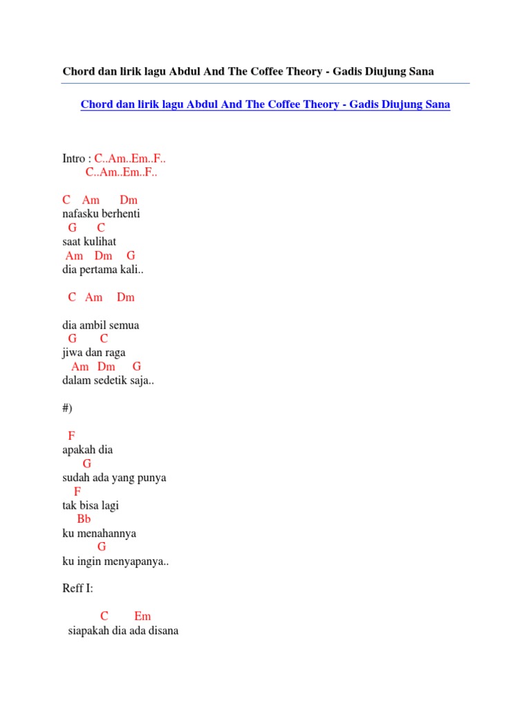 Chord Dan Lirik Lagu Abdul And The Coffee Theory Gadis Diujung