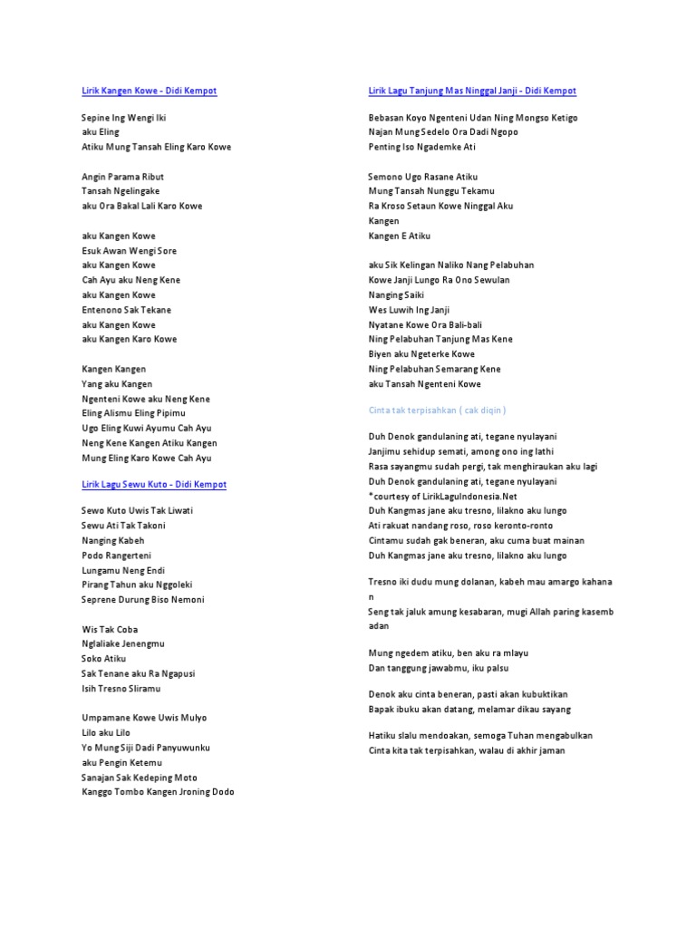 Didi Kempot Cinta Tak Terpisahkan Lyrics Musixmatch