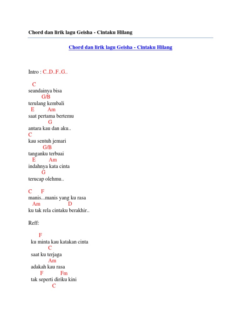 Chord Dan Lirik Lagu Geisha Cintaku Hilang By Chord Zila Issuu