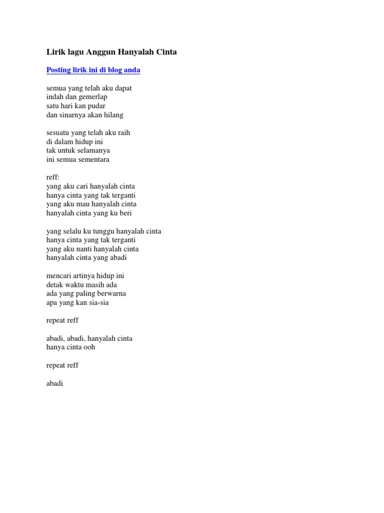 Lirik Lagu Cintaku Takkan Berubah Dari Anie Carera Gejag