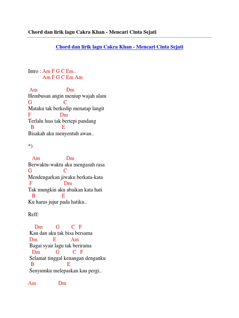 Chord Dan Lirik Lagu Cakra Khan Mencari Cinta Sejati By Chord Zila