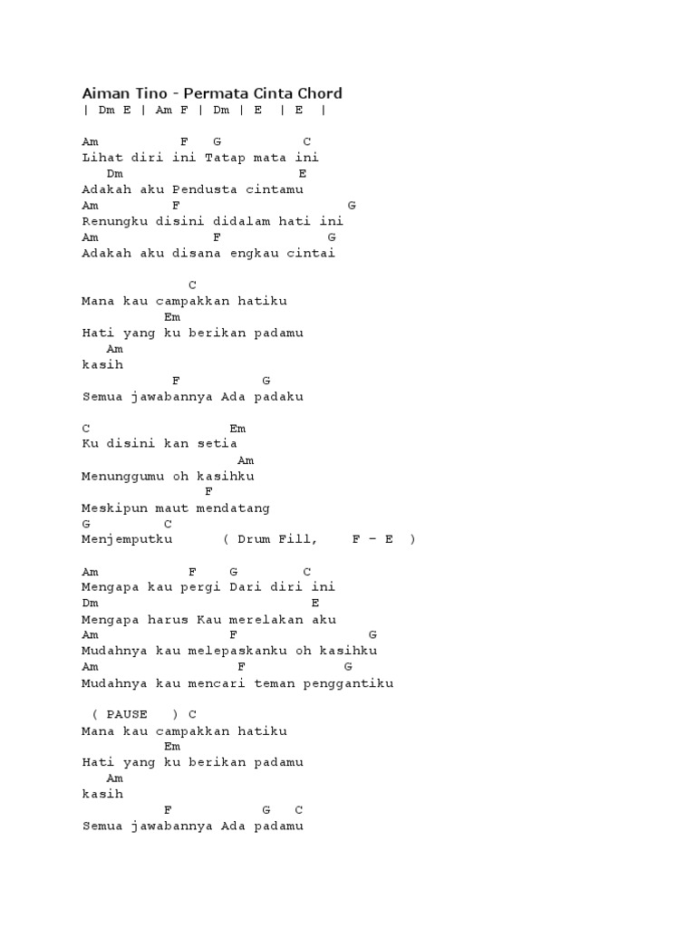 Chord Kunci Gitar Dan Lirik Lagu Permata Cinta Aiman Tino Mana