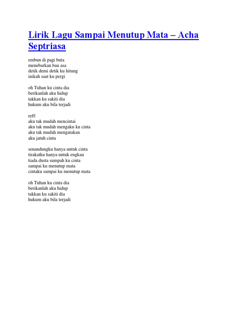 Lirik Lagu Sampai Menutup Mata