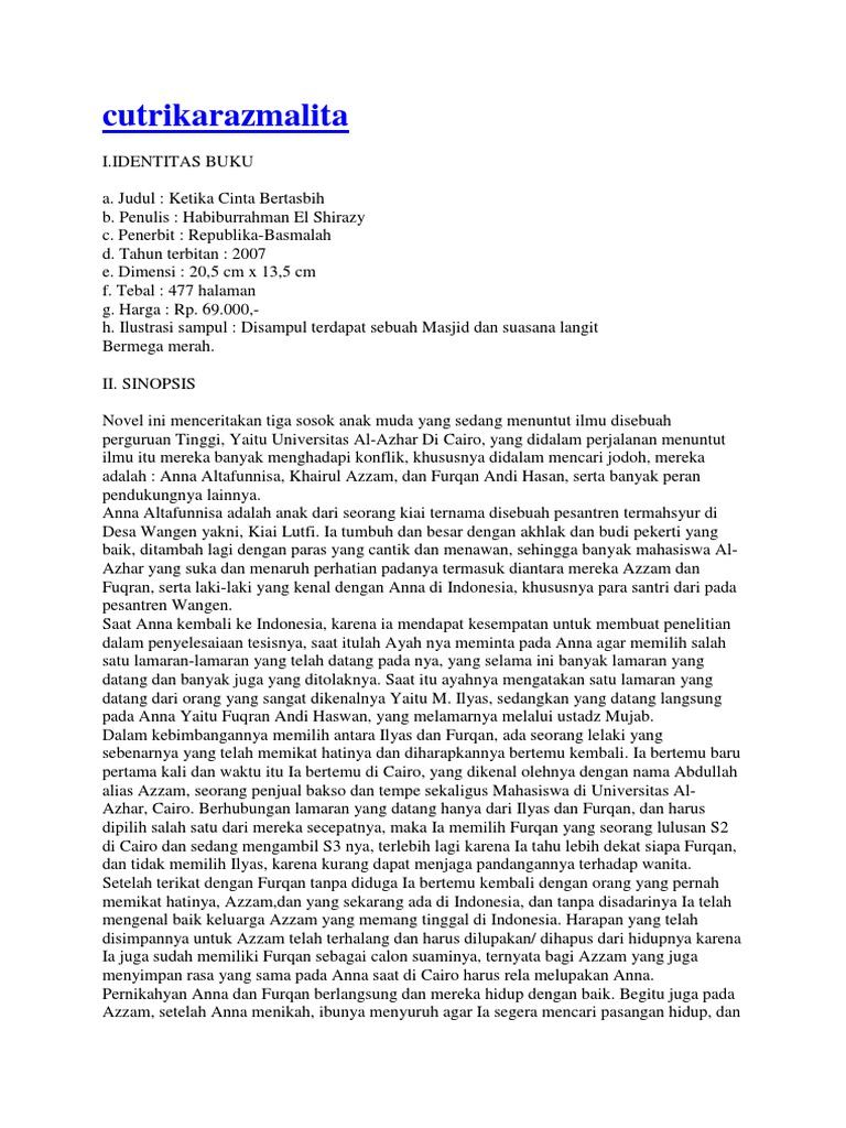 Contoh Review Text Bahasa Inggris Ketika Cinta Bertasbih Beserta