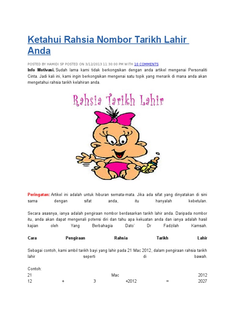 Ketahui Rahsia Nombor Tarikh Lahir Anda