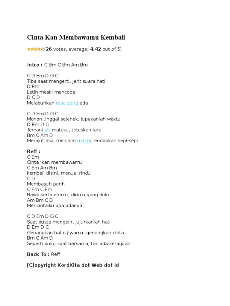 Not Lagu Cinta Kan Membawamu Kembali Disini