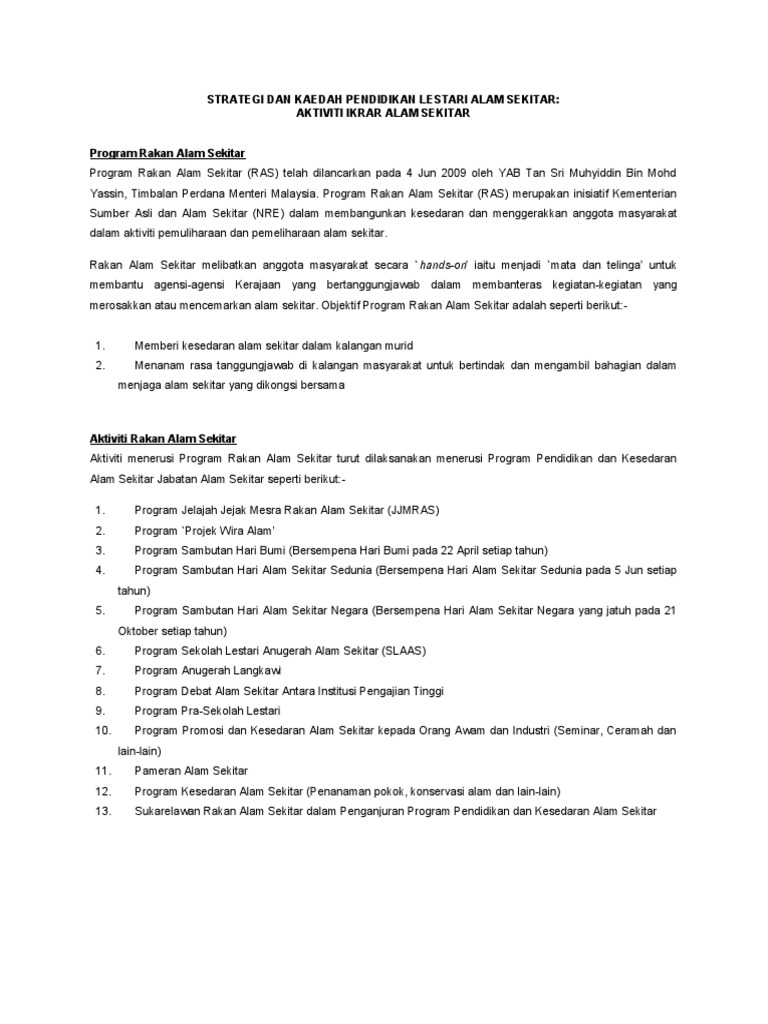 Strategi Dan Kaedah Pendidikan Lestari Alam Sekitar Aktiviti Ikrar
