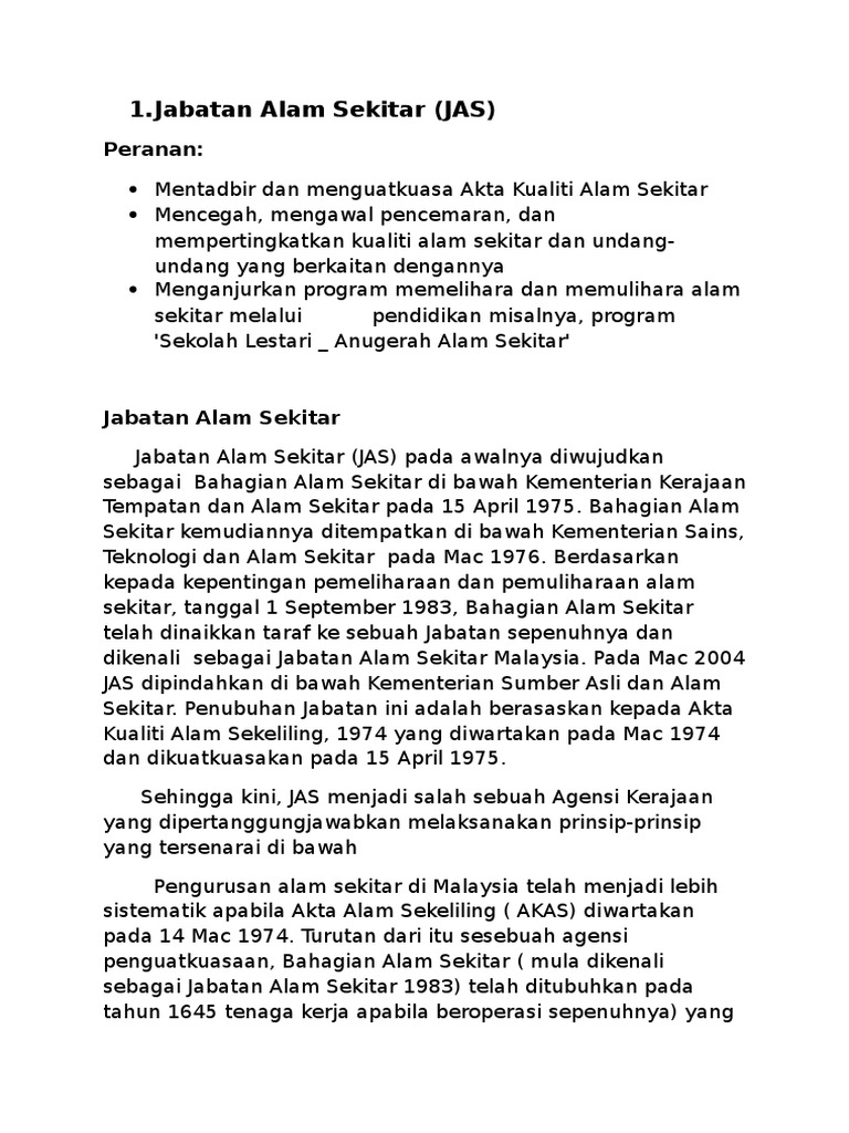 Peranan Jabatan Alam Sekitar Malaysia