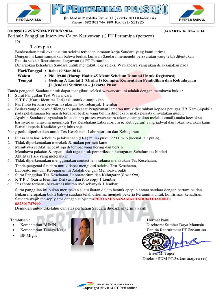 Surat Panggilan Tes Dari Pt Pertamina Ke Jakarta 1