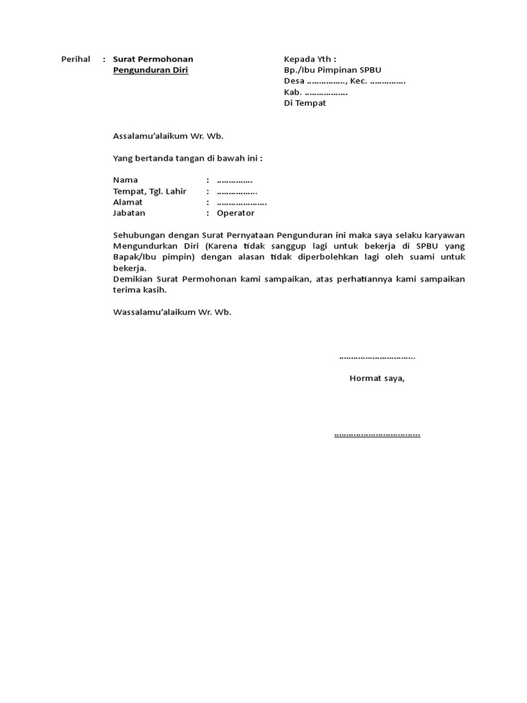 Surat Pengunduran Diri Karyawan Spbu