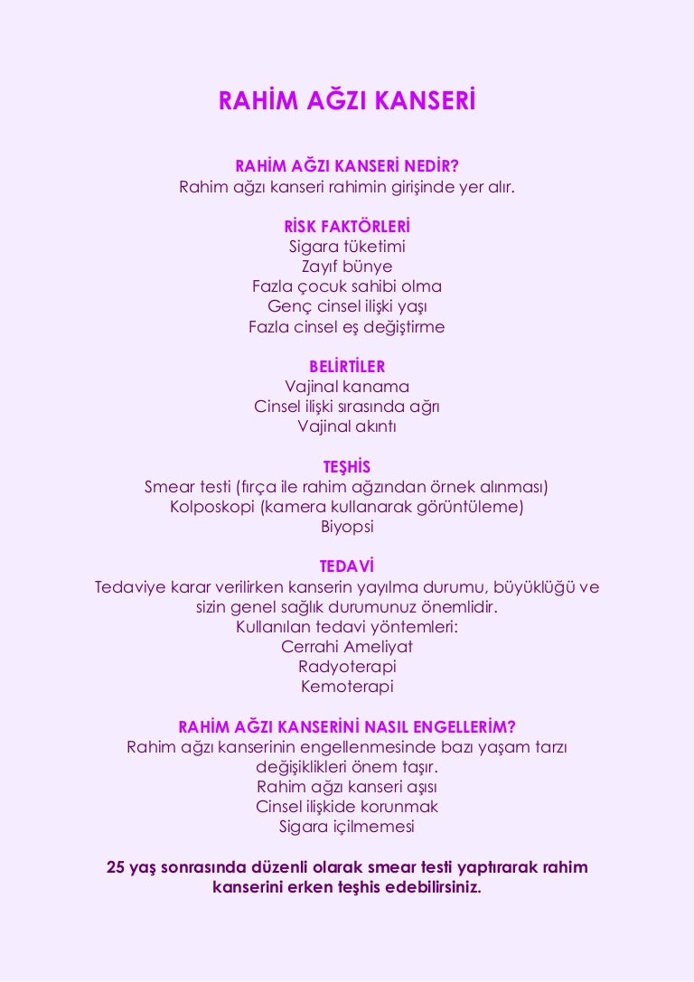 Serviks Rahim Agzi Kanseri Hakkinda Bilinmesi Gerekenler