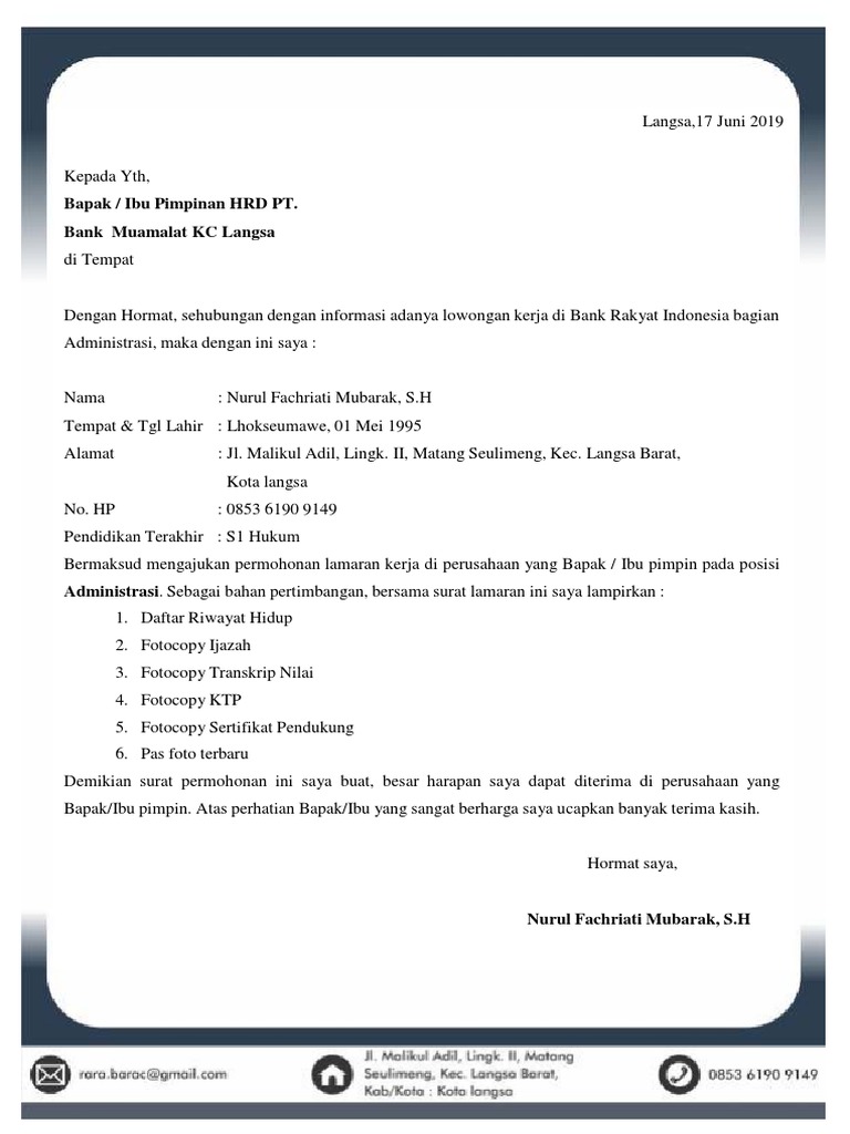 Cara Membuat Surat Lamaran Kerja Ke Bank Muamalat