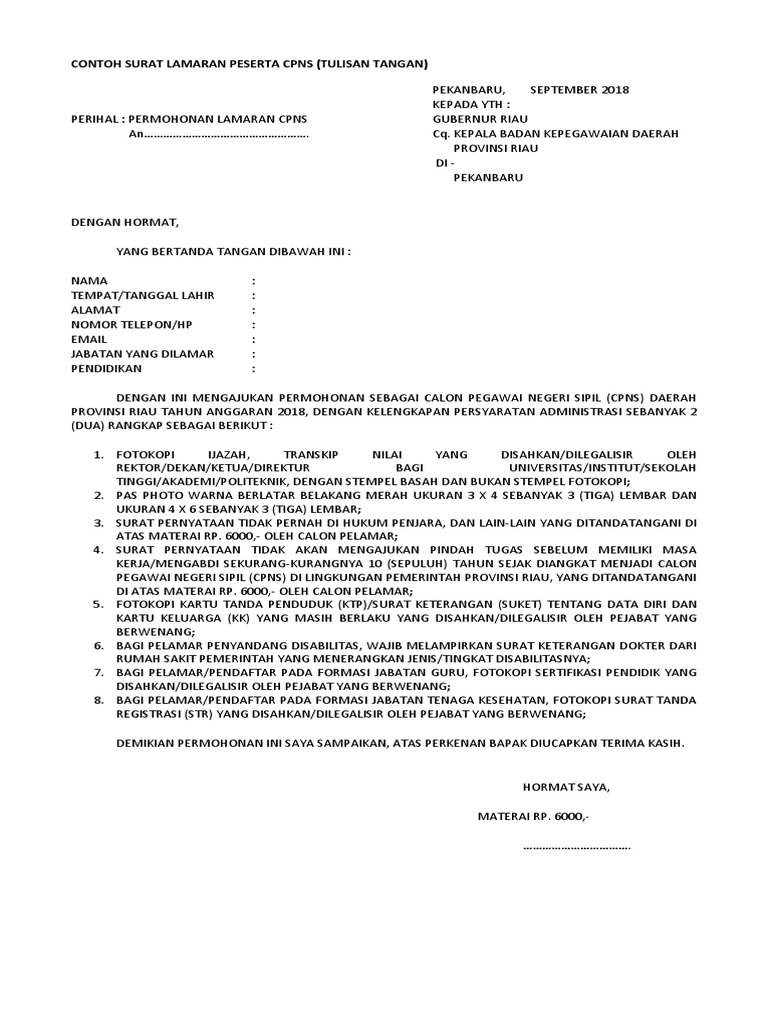 Contoh Surat Lamaran Cpns 2018 Pdf