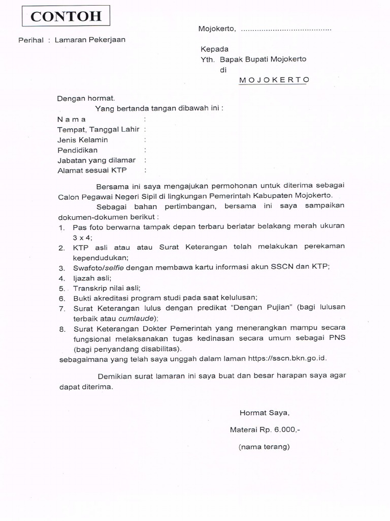 Contoh Form Surat Lamaran Cpns Agustus 2020 Terbaru Info Cpns