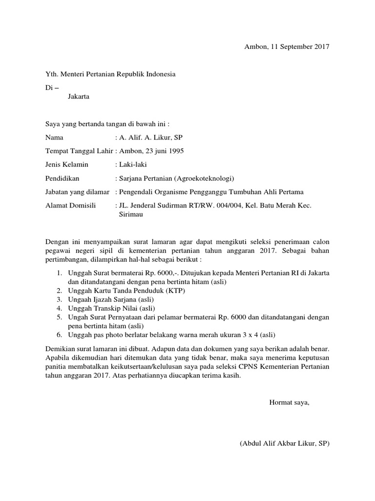 Download Contoh Surat Lamaran Cpns 2018 Komunitas Smk Kabupaten