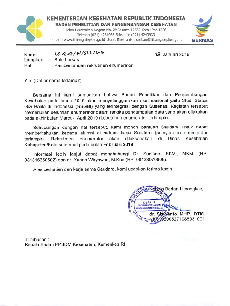 Rekruitmen Tenaga Enumerator Ssgbi Tahun 2019 Dinas Kesehatan