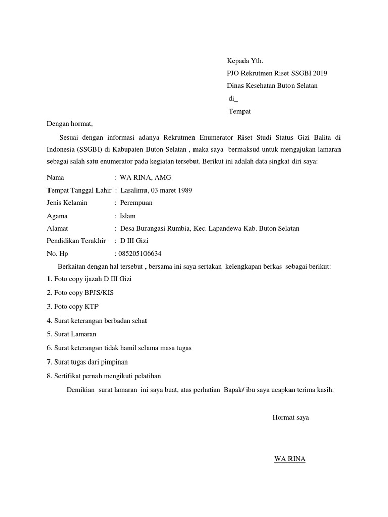 Surat Lamaran Enumerator Ssgbi