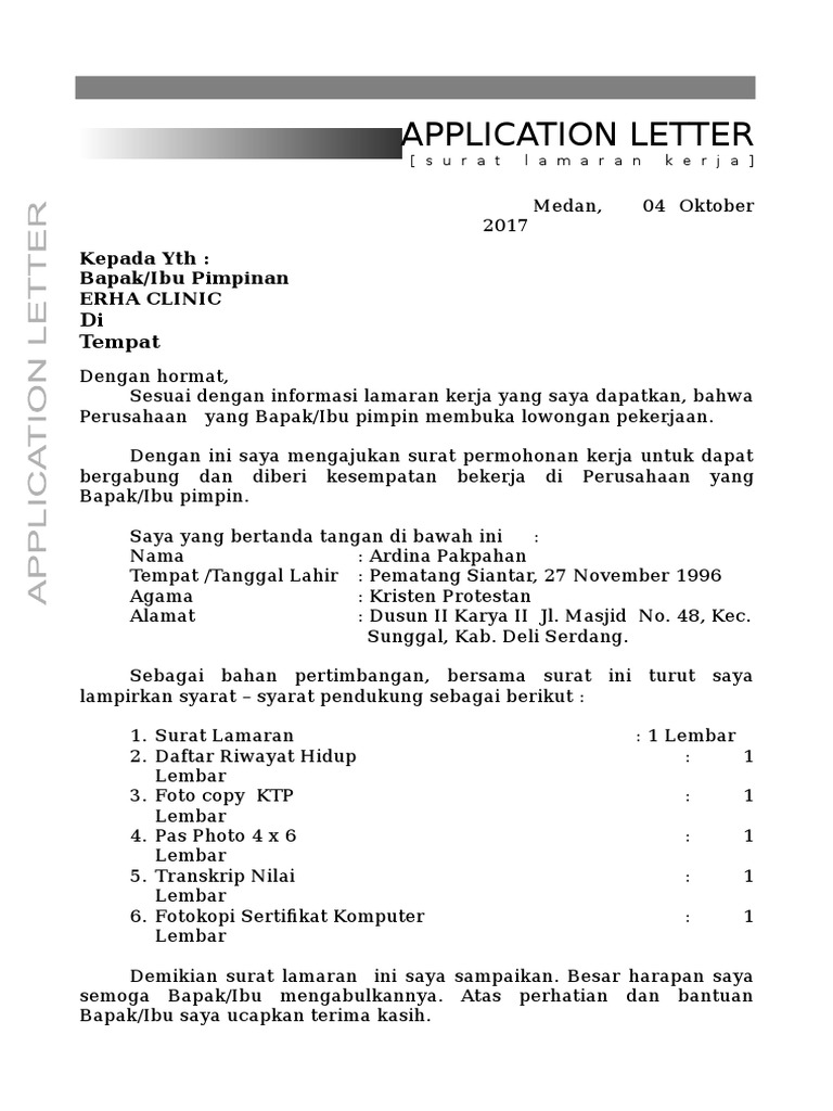 Contoh Surat Lamaran Kerja Erha Clinic Contoh Surat Lamaran