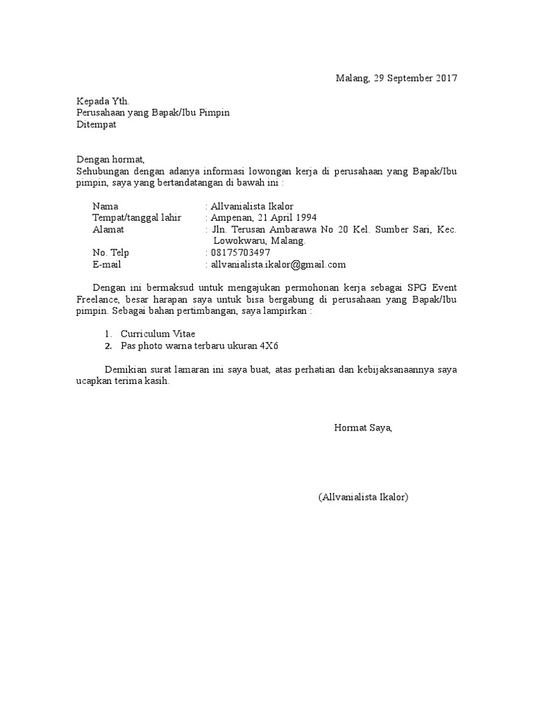 Surat Lamaran Dan Cv Untuk Spb