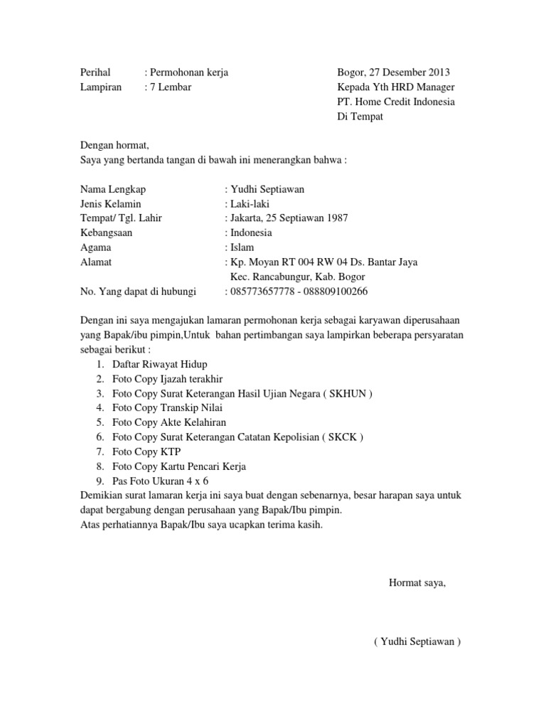 Contoh Surat Lamaran Home Credit Kumpulan Contoh Gambar
