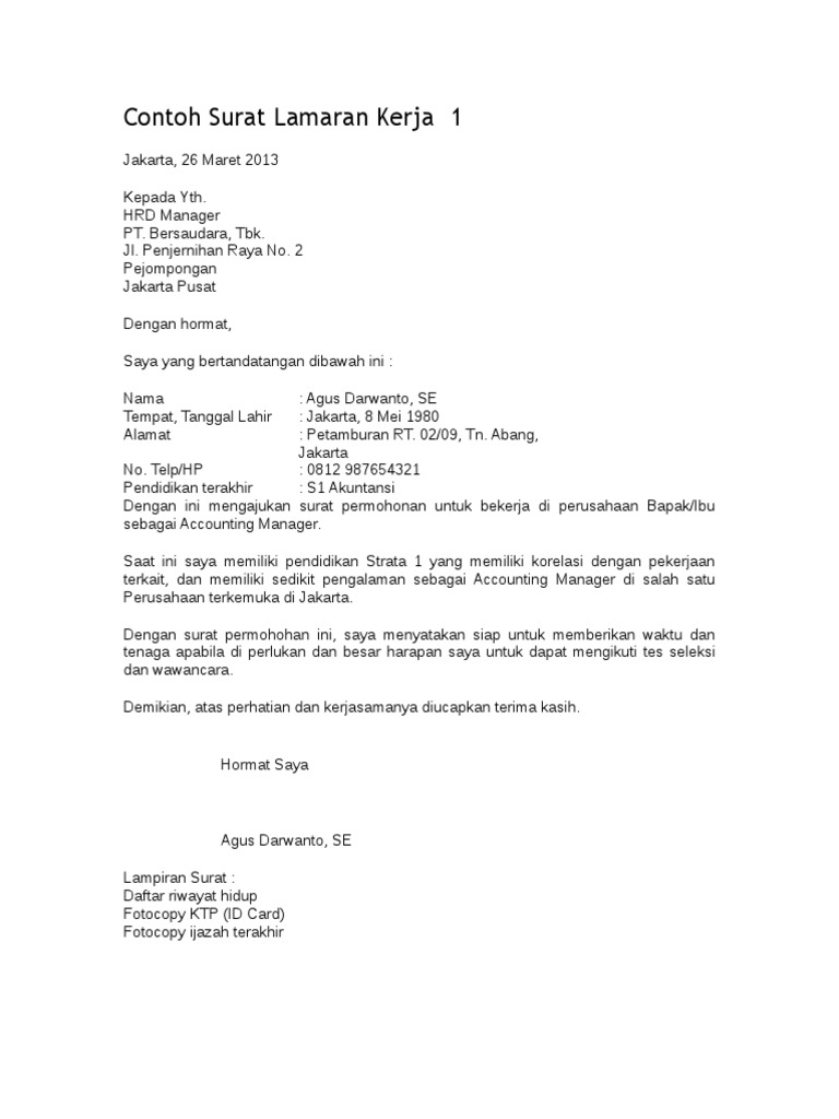 Contoh Surat Lamaran Kerja Yang Benar Menurut Hrd Doc Guelagi
