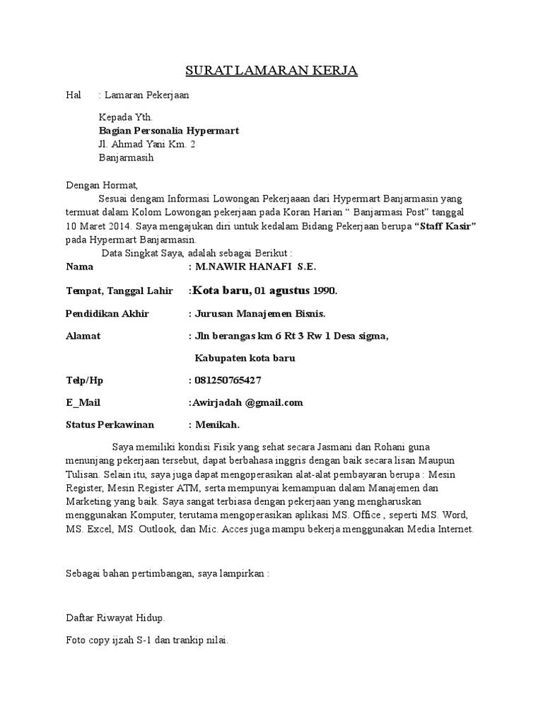 Contoh Surat Lamaran Kerja Hypermart Surat Lamaran Kerja