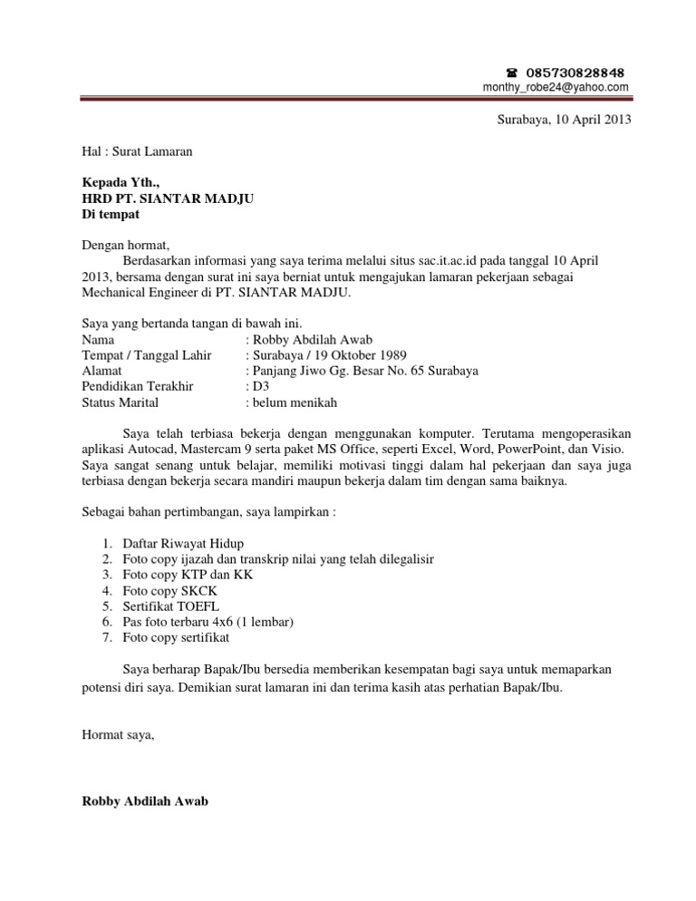 Contoh Surat Lamaran Kerja Bhs Indonesia Dan Inggris Berita Terbaru