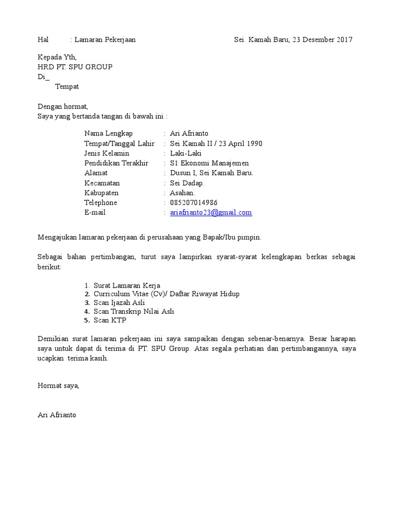 Surat Lamaran Pt Spu Group