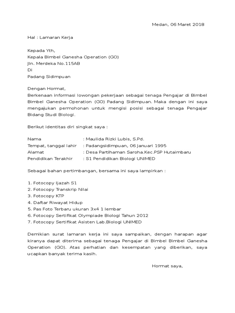Contoh Surat Lamaran Kerja Bimbel Ganesha Operation Kumpulan