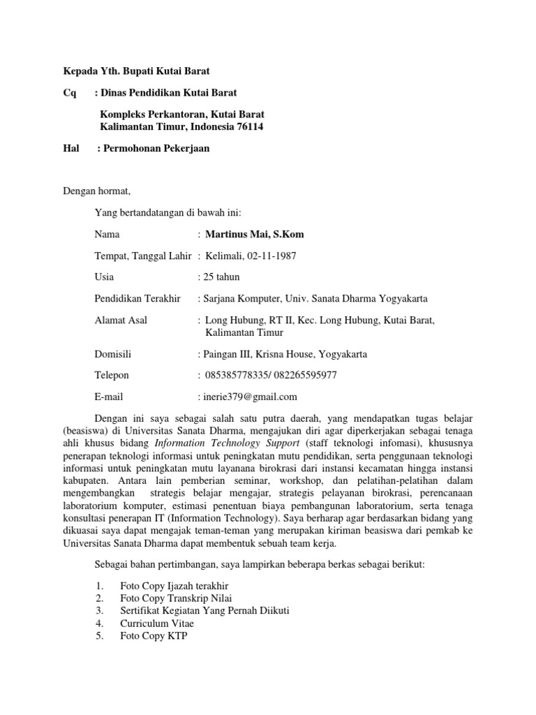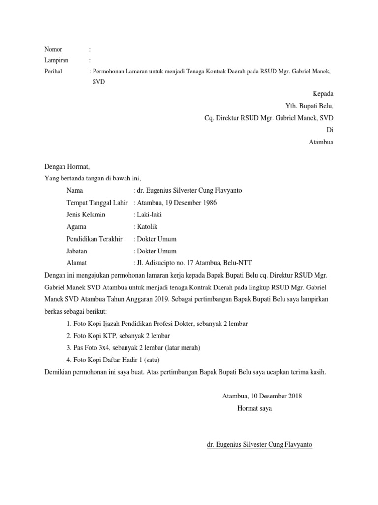 Contoh Surat Lamaran Kerja Cpns Untuk Bupati Kumpulan Surat Penting